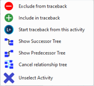 - Start Traceback from this activity: Select to start a traceback. For detailed steps see section Delay Analysis > Running a Traceback.