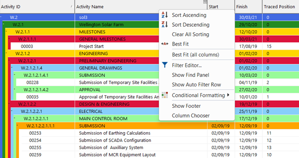 Navigate: Right click on existing Gantt Headings > Select from column selection dropdown menu
