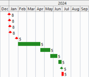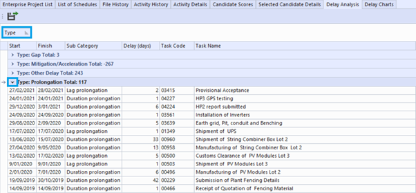 • Duration Prolongation: Shows activities where the actual time required to complete a task or activity is longer than initially planned. Duration prolongation directly affects the overall project timeline because it extends the time needed to complete individual tasks.