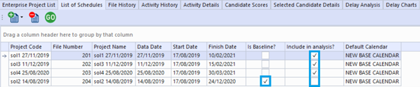 Is Baseline? – Select the file to be used as the baseline schedule. You can only have one baseline file selected. Include in analysis? – Select the files that should be included in the traceback.