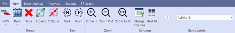 Selecting View in the Toolbar allows users to alter the schedule files displayed in the Gantt: